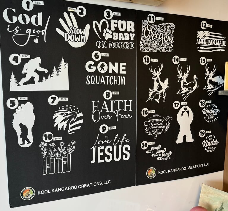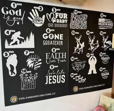 At Kool Kangaroo Creations, LLC, we bring your ideas to life with creativity, precision, and a passion for crafting. Specializing in laser-crafted designs, sublimated gifts, pin-back buttons, and vibrant stickers, our mission is to create unique, personalized items that inspire smiles and spark joy.